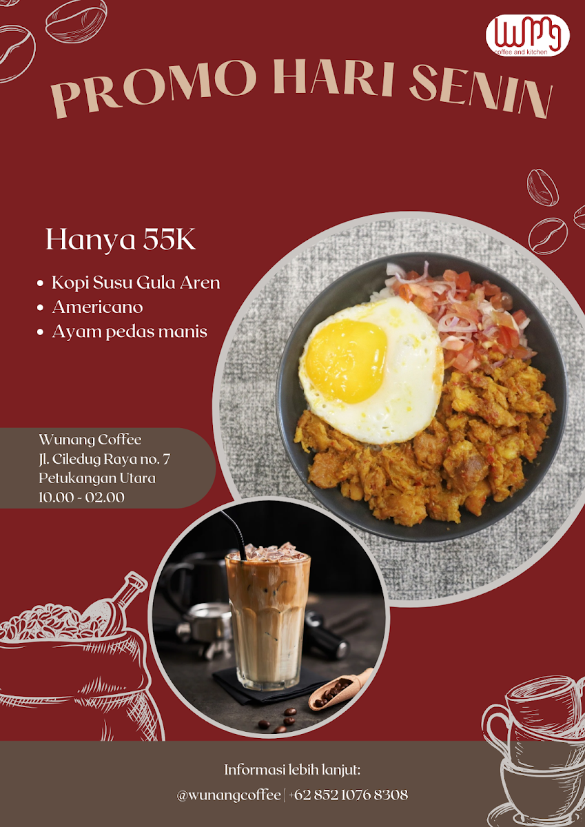 Welcome to Wunang Coffee, a cozy spot nestled in the heart of Jakarta that promises a delightful culinary experience. Located on Jl. Ciledug Raya, this charming café offers a diverse menu that caters to various tastes. Customers rave about the inviting atmosphere, making it an ideal place to unwind with friends or enjoy a casual meeting.